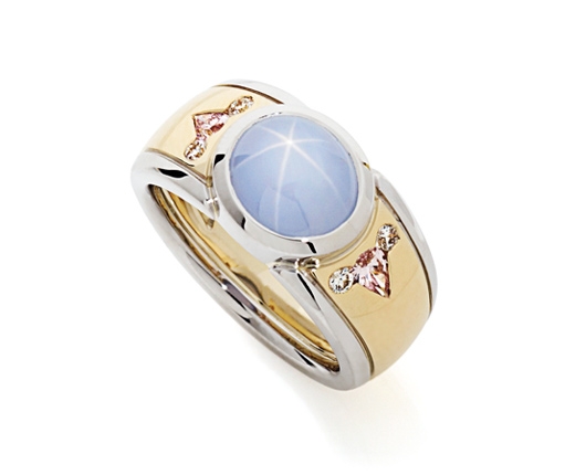 18 ct gold, palladium star sapphire and pink diamond cocktail engagement ring