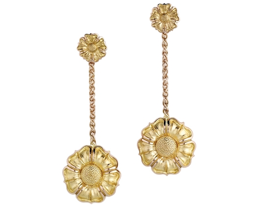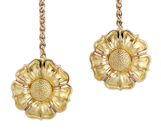 18ct gold earrings. Frosted and polished sterling silver rose bracelet.